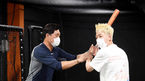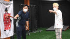 [OSEN=곽영래 기자] 16일 오후 서울 성북구의 한 야구 연습장에서 프로젝트 그룹 '아웃렛' 안성훈, 영기, 박성연이 전 프로야구 선수 봉중근과 함께 시구 시타 연습을 가졌다.봉중근 해설위원이 타격 동작을 알려주고 있다. 2021.06.16