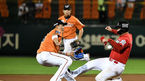 [OSEN=대전, 최규한 기자] 18일 대전 한화생명이글스파크에서 ‘2021 신한은행 SOL KBO리그’ 한화 이글스와 SSG 랜더스의 경기가 열렸다.6회초 2사 1루 상황 SSG 최지훈 타석 때 도루를 시도한 주자 이재원이 한화 유격수 하주석