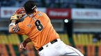 [OSEN=대전, 최규한 기자] 18일 대전 한화생명이글스파크에서 ‘2021 신한은행 SOL KBO리그’ 한화 이글스와 SSG 랜더스의 경기가 열렸다.4회초 2사 1루 상황 SSG 박성한의 내야 안타 때 타구를 잡은 한화 3루수 노시환이 1루로 송
