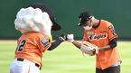 [OSEN=대전, 최규한 기자] 19일 대전 한화생명이글스파크에서 ‘2021 신한은행 SOL KBO리그’ 한화 이글스와 SSG 랜더스의 경기가 열렸다.모델 한현민이 시구자로 나서 한화 마스코트 위니와 인사를 나누고 있다. 2021.06.19 / dreamer
