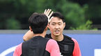 [OSEN=파주, 민경훈 기자] 김학범 감독이 이끄는 올림픽 축구대표팀이 오는 22일 파주 트레이닝센터(NFC)에서 2차 소집 훈련을 시작한다. 최종 명단 발표를 위한 소집이다.이강인이 훈련 중 하이파이브를 하고 있다. 21.06.22 /rumi@osen.c