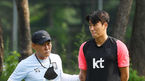 [OSEN=파주, 민경훈 기자] 김학범 감독이 이끄는 올림픽 축구대표팀이 오는 22일 파주 트레이닝센터(NFC)에서 2차 소집 훈련을 시작한다. 최종 명단 발표를 위한 소집이다.김학범 감독이 원두재와 얘기를 나누고 있다. 21.06.22 /rumi@os