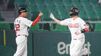 [OSEN=인천,박준형 기자] 24일 오후 인천 SSG랜더스필드에서 2021 신한은행 SOL KBO리그 SSG 랜더스와 LG 트윈스의 경기가 진행됐다.6회말 2사 SSG 최정이 솔로홈런을 날린뒤 홈에서 조동화 코치와 하이파이브를 하고 있다. 21.06.24 / soul101
