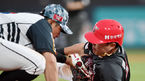 [OSEN=잠실, 민경훈 기자] 24일 오후 서울 잠실구장에서 2021 신한은행 SOL KBO리그 두산 베어스와 키움 히어로즈의 경기가 열렸다.5회초 1사 이지영의 타구를 두산 우익수 김인태가 몸을 날려 잡아내자 두산 선발 미란다가 경의를 표