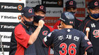 [OSEN=잠실, 지형준 기자] 25일 오후 서울 잠실야구장에서 ‘2021 신한은행 SOL KBO리그’ 두산 베어스와 롯데 자이언츠의 경기가 열렸다.3회초 1사 2루에서 롯데 추재현이 손아섭의 선제 적시 2루타에 홈을 밟고 서튼 감독과 기