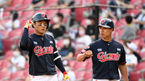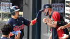 [OSEN=잠실, 지형준 기자] 26일 오후 서울 잠실야구장에서 ‘2021 신한은행 SOL KBO리그’ 두산 베어스와 롯데 자이언츠의 경기가 열렸다.4회초 1사 1,3루에서 롯데 손아섭이 정훈의 선제 1타점 적시타에 홈을 밟고 서튼 감독과