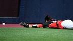 [OSEN=고척, 지형준 기자] 27일 오후 서울 고척스카이돔에서 ‘2021 신한은행 SOL KBO리그’ 키움 히어로즈와 KIA 타이거즈의 경기가 열렸다.9회말 무사 1루에서 KIA 김민식이 키움 김휘집의 파울 타구에 몸을 날렸지만 아쉽게 놓