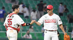 [OSEN=고척,박준형 기자] 30일 오후 서울 고척스카이돔에서 2021 신한은행 SOL KBO리그 키움 히어로즈와 롯데 자이언츠의 경기가 진행됐다.8회말 2사 1,2루 키움 홍원기 감독이 역전타 날린 김혜성과 하이파이브를 하고 있다. 21.06.30 / s