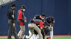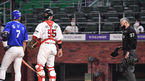 [OSEN=인천, 곽영래 기자] 1일 오후 인천SSG 랜더스필드에서 ‘2021 신한은행 SOL KBO리그’ SSG 랜더스와 삼성 라이온즈의 경기가 열렸다.연장 10회초 1사 김병주 구심이 SSG 서진용의 투구에 맞은 뒤 통증을 호소하고 있다. 2021.07.