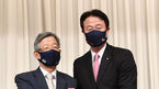 [OSEN=지형준 기자] 1일 오전 서울 청담동 리베라호텔에서 KBL 제10대 김희옥 총재 취임식이 열렸다.김희옥 총재가 고양 오리온 강을준 감독에게 농구공을 전달받고 기념 촬영을 하고 있다.2021.07.01 /jpnews@osen.co.kr