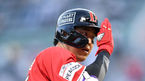 [OSEN=잠실,박준형 기자] 2일 오후 서울 잠실구장에서 ‘2021 신한은행 SOL KBO리그’ LG 트윈스와 한화 이글스의 경기가 진행됐다.3회초 1사 2,3루 한화 노시환이 1타점 적시타를 날린뒤 미소 짓고 있다. 21.07.02 / soul1014@osen.co.kr