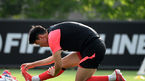 [OSEN=파주, 지형준 기자] 2일 오후 김학범 감독이 이끄는 올림픽 축구대표팀이 파주 국가대표팀 트레이닝센터(NFC)에 소집됐다.황의조가 훈련에 앞서 스트레칭을 하고 있다.2021.07.02 /jpnews@osen.co.kr