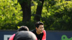[OSEN=파주, 지형준 기자] 2일 오후 김학범 감독이 이끄는 올림픽 축구대표팀이 파주 국가대표팀 트레이닝센터(NFC)에 소집됐다.이강인이 스트레칭을 하며 미소짓고 있다.2021.07.02 /jpnews@osen.co.kr
