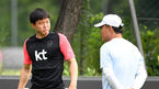[OSEN=파주, 지형준 기자] 2일 오후 김학범 감독이 이끄는 올림픽 축구대표팀이 파주 국가대표팀 트레이닝센터(NFC)에 소집됐다.김학범 감독이 훈련을 앞두고 권창훈과 이야기를 나누고 있다.2021.07.02 /jpnews@osen.co.kr