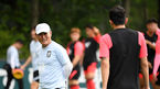 [OSEN=파주, 지형준 기자] 2일 오후 김학범 감독이 이끄는 올림픽 축구대표팀이 파주 국가대표팀 트레이닝센터(NFC)에 소집됐다.김학범 감독이 훈련을 지켜보며 김민재에 향하는 패스를 차단하고 있다.2021.07.02 /jpnews@osen.co.kr