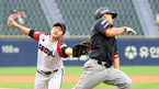 [OSEN=잠실, 이대선 기자] 4일 오후 서울 잠실야구장에서 ’2021 신한은행 SOL KBO 리그' LG 트윈스와 한화 이글스의 경기가 열렸다.8회초 1사 1루에서 LG 문보경이 땅볼을 치고 그라운드를 달리는 한화 백용환을 태그가웃 처리하고