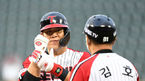 [OSEN=잠실, 이대선 기자] 4일 오후 서울 잠실야구장에서 ’2021 신한은행 SOL KBO 리그' LG 트윈스와 한화 이글스의 경기가 열렸다.9회초 무사에서 한화 조한민이 좌전 안타를 치고 이상훈 코치와 하이파이브를 하고 있다. 2021.07.04