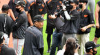 [OSEN=잠실, 이대선 기자] 4일 오후 서울 잠실야구장에서 ’2021 신한은행 SOL KBO 리그' LG 트윈스와 한화 이글스의 경기가 열렸다.경기에 앞서 KIA에서 트레이드 된 한화 백용환이 상견례를 준비하고 있다. 2021.07.04 /sunday@osen.co.kr