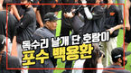[OSEN=잠실, 이대선 기자] 4일 오후 서울 잠실야구장에서 ’2021 신한은행 SOL KBO 리그' LG 트윈스와 한화 이글스의 경기가 열릴 예정이다.경기에 앞서 KIA에서 트레이드 된 백용환이 한화 선수단과 상견례를 했다.한화 유니폼을