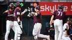[OSEN=수원, 이대선 기자] 4일 오후 수원 KT위즈파크에서 ’2021 신한은행 SOL KBO 리그' KT 위즈와 키움 히어로즈의 경기가 열렸다.3회초 1사 1,2루에서 키움 박동원이 좌월 스리런 홈런을 치고 홈에서 동료들의 축하를 받고 있다. 202
