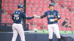 [OSEN=잠실,박준형 기자] 6일 오후 서울 잠실구장에서 2021 신한은행 SOL KBO리그 두산 베어스와 NC 다이노스의 경기가 진행됐다.3회초 1사 1루 NC 박민우가 1타점 적시 3루타를 날리고 진종길 코치와 하이파이브를 하고 있다. 21.07.06 / so