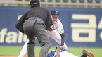 [OSEN=잠실,박준형 기자] 6일 오후 서울 잠실구장에서 2021 신한은행 SOL KBO리그 두산 베어스와 NC 다이노스의 경기가 진행됐다.2회초 2사 1루 NC 이명기의 타석때 안재석 유격수가 도루 시도한 1루 주자 박준영을 태그아웃시키고 있