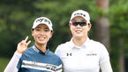 [OSEN=파주, 김성락 기자] 9일 경기도 파주시 서원밸리 컨트리클럽(파72 6639야드)에서 ‘대보 하우스디 오픈 (총상금 10억 원)’1라운드 경기가 열렸다.1번홀 안나린, 이정민이 티샷을 마친 뒤 취재진을 향해 포즈를 취하고 있