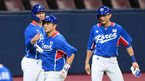 [OSEN=고척, 이대선 기자] 김경문 감독이 이끄는 2020 도쿄 올림픽 야구 국가대표팀이 23일 오후 서울 고척스카이돔에서 상무와 평가전을 가졌다.7회말 2사 1,2루에서 대표팀 최주환이 우월 스리런 홈런을 치고 홈에서 이종열 코치의