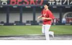 [OSEN=광주,박준형 기자] 12일 광주-기아 챔피언스필드에서 열릴 예정이었던 2021 신한은행 SOL KBO리그 KIA 타이거즈와 한화 이글스의 경기가 우천으로 취소됐다.우천취소 확정 뒤 KIA 정해영이 우천 취소 세리머니를 하고 있다. 2021.0