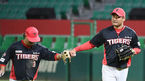 [OSEN=인천, 최규한 기자] 14일 인천 SSG랜더스필드에서 ‘2021 신한은행 SOL KBO리그’ SSG 랜더스와 KIA 타이거즈의 경기가 열렸다.8회초 무사 선두타자로 나선 KIA 김민식이 역전 우월 솔로포를 날리고 더그아웃 동료들과 인사