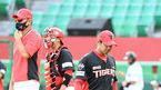 [OSEN=수원, 김성락 기자] 15일 경기도 수원시 수원 kt위즈파크에서 ‘2021 신한은행 SOL KBO 리그’ KT 위즈와 삼성 라이온즈의 경기가 열렸다.3회말 KT 선두타자 황재균이 동점 솔로 홈런을 날린 뒤 더그아웃에서 이강철 감독과