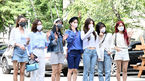 [OSEN=이대선 기자] 17일 오후 서울 영등포구 여의도 KBS에서 프로그램 녹화가 진행됐다.그룹 오마이걸이 방송국으로 이동하며 포즈를 취하고 있다. 2021.08.17 /sunday@osen.co.kr