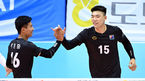 [OSEN=의정부, 조은정 기자] 17일 오후 경기도 의정부 실내체육관에서 2021 의정부·도드람컵 프로배구대회 우리카드와 국군체육부대의 경기가 열렸다.1세트 득점에 성공한 국군체육부대 한국민이 이원중과 기뻐하고 있다. 202