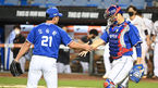 [OSEN=대전, 김성락 기자] 18일 오후 대전 한화이글스파크에서 ‘2021 신한은행 SOL KBO 리그’ 한화 이글스와 삼성 라이온즈의 경기가 열렸다.7회초 무사 3루 삼성 강민호가 희생플라이로 타점을 올린 뒤 더그아웃에서 동료 선