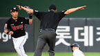 [OSEN=부산, 김성락 기자] 20일 오후 부산 사직야구장에서 '2021 신한은행 SOL KBO리그' 롯데 자이언츠와 KT 위즈의 경기가 열렸다.1회초 1사 1루 롯데 스트레일리가 보크를 범한 뒤 아쉬워하고 있다. 2021.08.20 /ksl0919@osen.co.kr