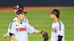 [OSEN=잠실, 지형준 기자] 26일 오후 서울 잠실야구장에서 ‘2021 신한은행 SOL KBO리그’ LG 트윈스와 삼성 라이온즈의 경기가 열렸다.6회초 투수교체에 LG 서건창이 실책으로 실점을 허용한 이영빈을 격려하고 있다. 2021.08.26 /j