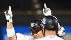 [OSEN=수원, 김성락 기자] KT가 약속의 8회를 앞세워 짜릿한 역전승을 챙겼다.KT 위즈는 27일 수원KT위즈파크에서 열린 2021 신한은행 SOL KBO리그 SSG 랜더스와의 시즌 10차전에서 6-4로 승리했다.승리가 확정된 순간 KT 허도환, 김재윤이