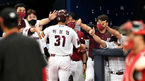 [OSEN=고척, 최규한 기자] 5일 오후 서울 고척 스카이돔에서 ‘2021 신한은행 SOL KBO리그’ 키움 히어로즈와 SSG 랜더스 경기가 열렸다.8회말 1사 1, 2루 상황 키움 허정협이 동점 1타점 적시타를 날리고 더그아웃 동료들의 축하