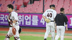 [OSEN=인천, 민경훈 기자] 8일 오후 인천SSG랜더스필드에서 ‘2021 신한은행 SOL KBO 리그’ SSG 랜더스와 LG 트윈스의 경기가 열렸다.3회초 1사 주자 만루 LG 채은성 타석에서 SSG 최민준이 마운드 위에서 이현석과 얘기를 나누고