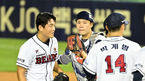 [OSEN=수원 , 곽영래 기자] 8일 오후 수원 KT위즈파크에서 '2021 신한은행 SOL KBO리그' KT 위즈와 KIA 타이거즈의 경기가 열렸다.9회초 1사 2루 크트 이강철 감독이 마운드에 올라 김재윤과 이야기를 나누고 있다. 2021.09.08/youngrae@osen.co.kr