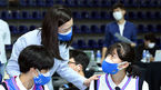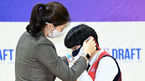 [OSEN=용인, 조은정 기자] 8일 오전 용인 실내체육관에서 2021~2022 WKBL 신입선수선발회가 열렸다.BNK썸 박정은 감독이 2라운드 5순위로 지명된 온양여고 이주하(170cm)에게 마스크를 씌워주고 있다. 2021.09.08 /cej@osen.co.kr