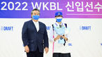 [OSEN=용인, 조은정 기자] 8일 오전 용인 실내체육관에서 2021~2022 WKBL 신입선수선발회가 열렸다.BNK썸 2라운드 1순위로 지명된 숙명여고 최민주(180cm)가 박정은 감독과 포즈를 취하고 있다. 2021.09.08 /cej@osen.co.kr