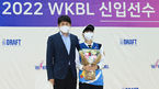[OSEN=용인, 조은정 기자] 8일 오전 용인 실내체육관에서 2021~2022 WKBL 신입선수선발회가 열렸다.우리은행 2라운드 2순위로 지명된 춘천여고 김은선(180cm)이 위성우 감독과 포즈를 취하고 있다. 2021.09.08 /cej@osen.co.kr