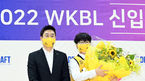 [OSEN=용인, 조은정 기자] 8일 오전 용인 실내체육관에서 2021~2022 WKBL 신입선수선발회가 열렸다.신한은행 1라운드 3순위로 지명된 분당경영고 변소정(180cm)가 구나단 감독대행과 포즈를 취하고 있다. 2021.09.08 /cej@osen.co.kr