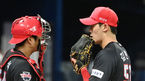 [OSEN=고척, 민경훈 기자] 9일 오후 서울 고척 스카이돔에서 ‘2021 신한은행 SOL KBO 리그’ 키움 히어로즈와 KIA 타이거즈의 경기가 열렸다.5회초 1사 주자 1,2루 키움 선발 정찬헌과 박동원이 얘기를 나누고 있다. 21.09.09/rumi@osen