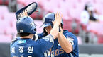 [OSEN=광주, 최규한 기자] 12일 오후 광주기아챔피언스필드에서 ‘2021 신한은행 SOL KBO리그’ KIA 타이거즈와 NC 다이노스의 더블헤더 1차전이 열렸다.8회초 무사 1루 상황 NC 나성범이 달아나는 우월 투런포를 날리고 홈을 밟은