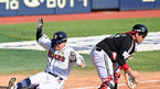 [OSEN=잠실, 지형준 기자] 12일 오후 서울 잠실야구장에서 ‘2021 신한은행 SOL KBO리그’ 두산 베어스와 LG 트윈스의 경기가 열렸다.4회말 1사 2,3루에서 두산 박세혁이 박건우의 희생플라이에 LG 유강남에 앞서 세이프되고 있다.