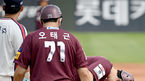 [OSEN=부산, 김성락 기자] 12일 오후 부산 사직야구장에서 '2021 신한은행 SOL KBO리그' 롯데 자이언츠와 키움 히어로즈의 더블헤더 경기 1차전이 열렸다.3회초 2사 1, 3루 키움 박동원이 1타점 적시타를 날린 뒤 오태근 코치와 하이파이