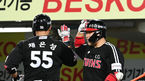 [OSEN=대구, 민경훈 기자] 14일 오후 대구삼성라이온즈파크에서 ’2021 신한은행 SOL KBO리그’ 삼성 라이온즈와 LG 트윈스의 경기가 열렸다.5회초 2사 주자 2루 LG 채은성이 좌월 투런 홈런을 날린 후 유강남과 하이파이브를 하