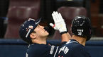 [OSEN=고척, 이대선 기자] 19일 오후 서울 고척스카이돔에서 ’2021 신한은행 SOL KBO 리그' 키움 히어로즈와 두산 베어스의 경기가 열렸다.4회초 2사 1,2루에서 두산 양석환이 좌월 스리런 홈런을 치고 홈에서 동료들의 축하를 받